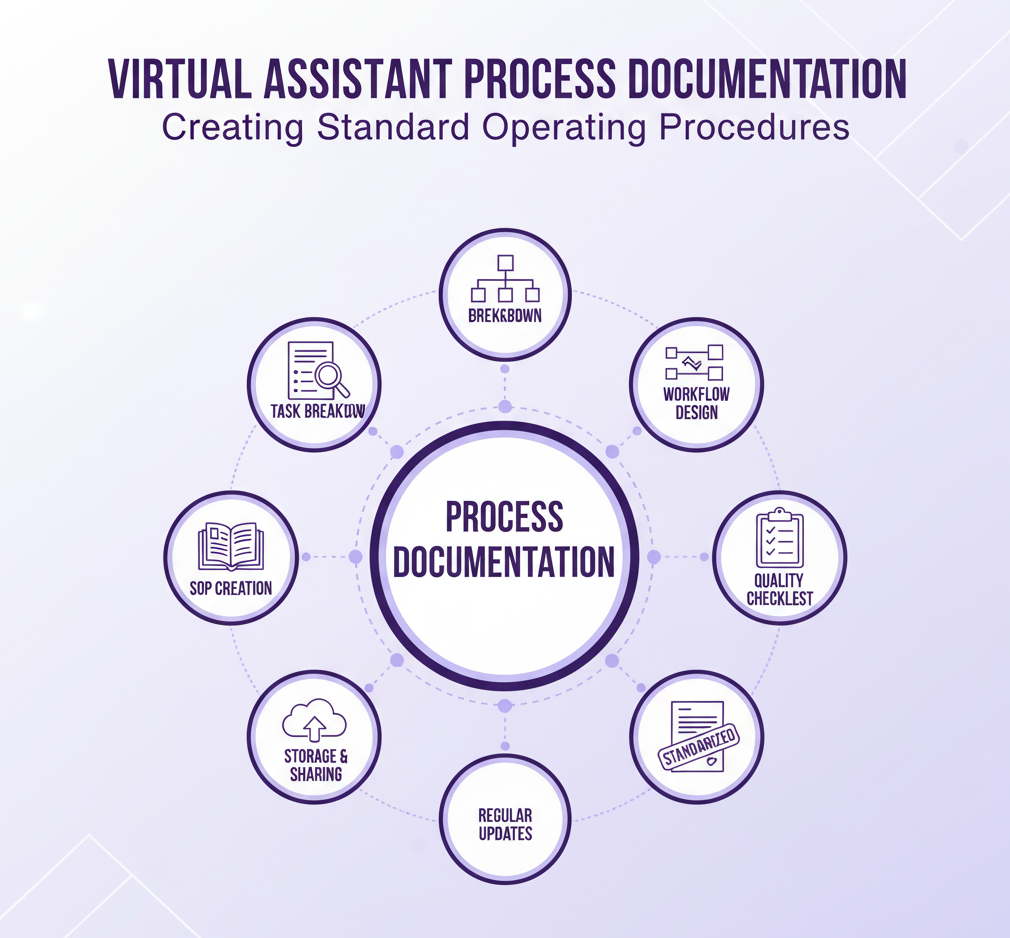 Learn how virtual assistant process documentation and SOP creation improve efficiency, consistency, and scalability. Explore tools, templates, and strategies for streamlined VA workflows.
